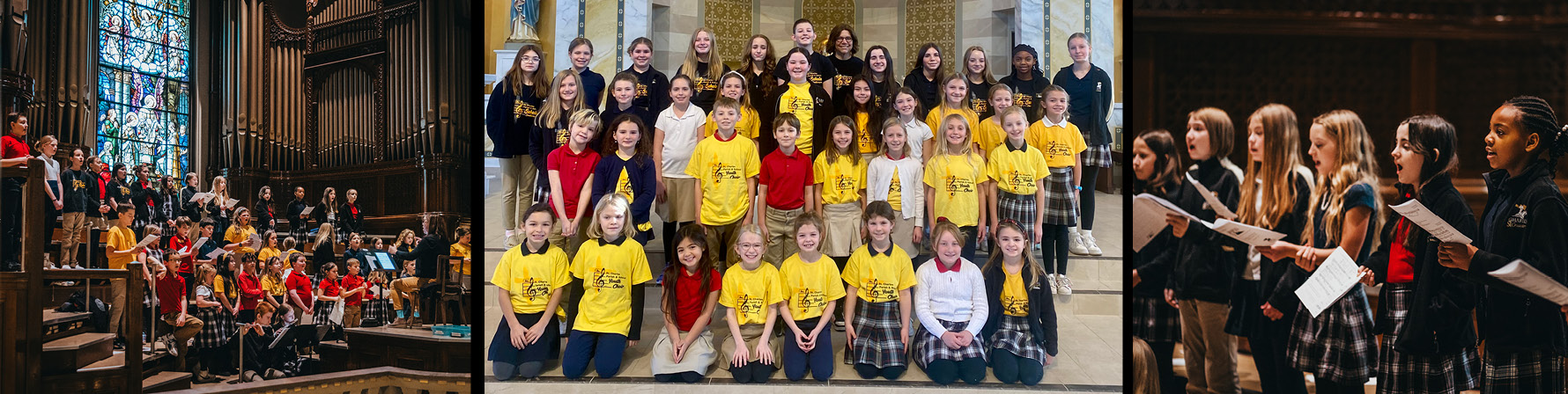 Schola is open to students in Grades 5-8. A more advanced ensemble, singers in Schola are trained as psalmists and cantors. They sing harmonies and practice playing handbells and percussion instruments. Some Schola members play instruments at Mass such as the violin. Schola sings at School masses on Thursday mornings and once a month at a weekend Mass during the school year. Many Schola alumni go on to sing in our Praise Group, serve as Cantors, and sing in the Adult Choir. For more information, contact Peg Kasun: pkasun@stcharleshartland.org.